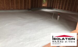 The basement cement sub-slab is a very cold and humid place. If you want the floor you’ll be installing not to be cold for your feet, you’ll need to insulate it properly. To get good results, nothing equals sprayed polyurethane in terms of performance. Not only is it made on site directly on the gravel, but it’s also the material that has the highest insulation factor, which is R6 per inch. It acts as an air barrier and as a vapour barrier at the same time, without any joint.