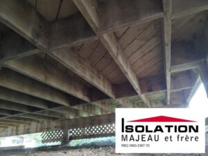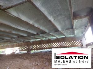 To overcome this inconvenience, a solution is needed: to insulate the underside of the floor with a minimum of 5 inches of sprayed urethane, which will ensure a high-insulating value of R-30. In addition to acting as an air and vapour barrier, the urethane will perfectly seal the structure as well as all the interstices of the floor, guaranteeing an incomparable seal against cold, humidity and heat. (During the construction of a new building, the building code requires R-29.5 for an exposed floor. The application of 5 inches of urethane under the floor of a veranda or solarium meets this standard, which is adapted to the harshness of Quebec’s northern climate.)
